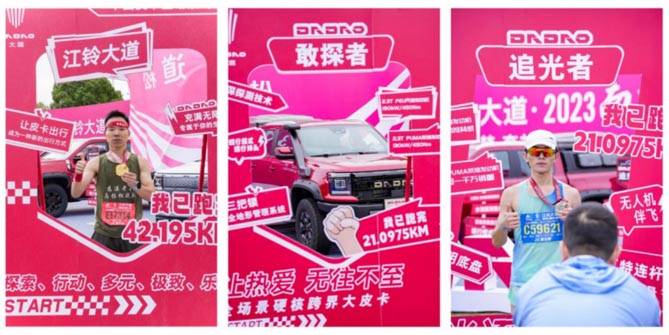 作为南昌马拉松的“亲密伙伴”,江铃大道同样如此。今年是江铃汽车上市30周年,30年以来,江铃汽车打造了众多经典车型,牢牢占据着国内皮卡领导者地位。基于在皮卡领域的深厚实力以及对消费趋势的深刻洞察,江铃汽车于今年推出了全新品牌——江铃大道。江铃大道诞生的初衷正是为了满足大家对各种美好生活的追求,它以开放、融合、进取的态度和力量,引导每个人勇敢挑战,克服困难,超越自我,创造美好生活。