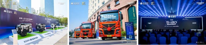5年间,中国重汽推出全球首辆搭载潍柴热效率52.28%柴油发动机和热效率54.16%燃气发动机的重卡产品,通过集团一体化协同,打造原装原配无极S动力链,综合传动效率高达93%,体系化节油/节气高达15.5%;研发出行业唯一双挡电驱桥,并应用于多款新能源商用车;建成行业数字化“灯塔工厂”,世界一流的商用车生产基地,赋能绿色智造;中国重汽无人驾驶电动集卡实现全球首次整船作业;发布全国首台商业化氢内燃机重卡——全新一代黄河重卡,实现氢内燃机重卡商业化落地;自主研发了我国第一辆具有完全自主知识产权的黄河氢燃料电池智能雪蜡车,并全程服务于2022北京冬奥会;黄河X7成功挑战“半挂式卡车单次加油行驶最远距离”吉尼斯世界纪录并以0.349的极致风阻系数,被世界四大权威机构认证或声明为全球量产重卡最低风阻系数……
