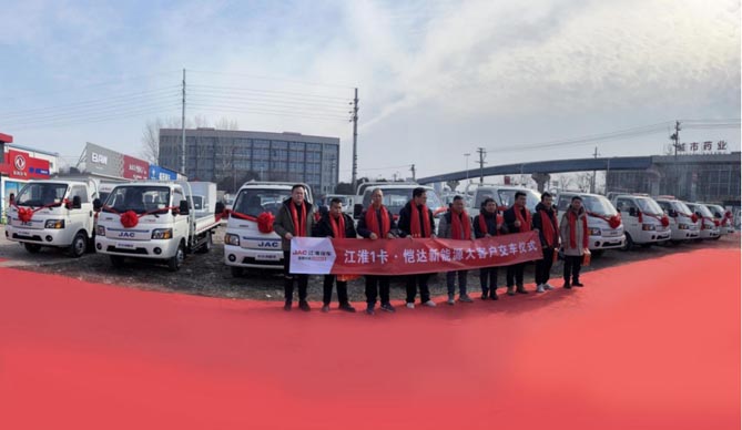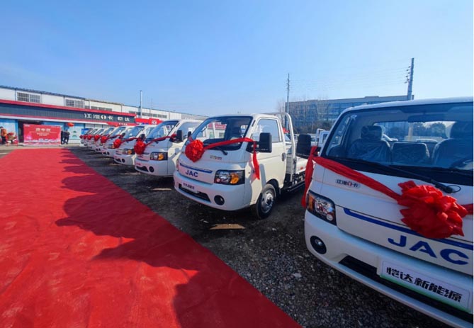 喜迎开门红,启航新征程。1月26日,在美丽的“珠城”——安徽蚌埠,10台江淮1卡恺达EX6纯电小卡整装待发,批量交付京丰电子公司,喜迎2024开门红。作为绿色短途物流的高价值小卡,江淮1卡恺达凭借高路权、高价值和长续航,为城配物流带去绿色新体验。京丰电子此前长期使用燃油轻、小卡车型开展运输任务,在充分了解恺达EX6的优势后,开展此次批量采购,并将逐步替换公司原有车辆,助力公司深度降本增效,开启2024创富新征程。