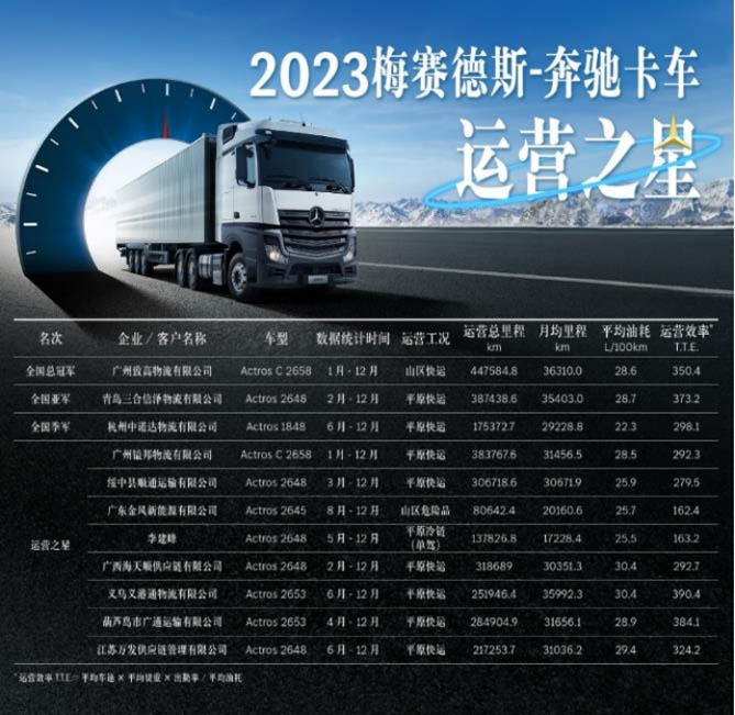 2023梅赛德斯-奔驰卡车运营之星评比结果