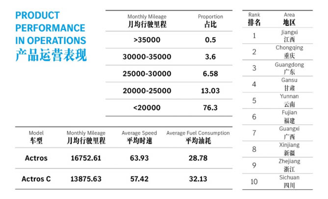 2023梅赛德斯-奔驰卡车运营之星评比结果用数据说话,基于奔好运™车联网服务中的在运营车辆进行综合评比,包含了梅赛德斯-奔驰卡车在快递、快运、普货、冷链及危险品等各细分运输领域的真实运营表现。
