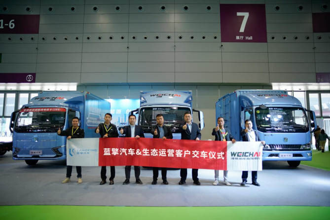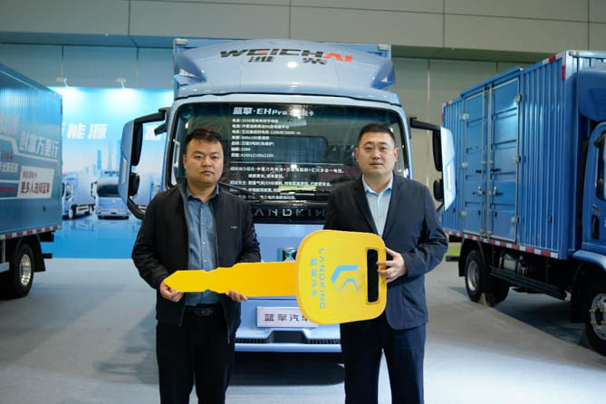 蓝擎新能源系列产品此次重磅亮相,凭借出色的实力赢得了用户的一致认可,并在展区现场,迎来了和同心智行首批50台的交车,两者强强联合,共同谱写美好未来。同时此次大客户交车是市场对于蓝擎新能源产品的认可和肯定,也意味着蓝擎新能源产品将继续以更高品质、更优服务、更佳产品携手卡友共创美好新生活。