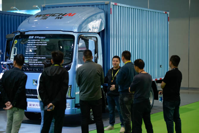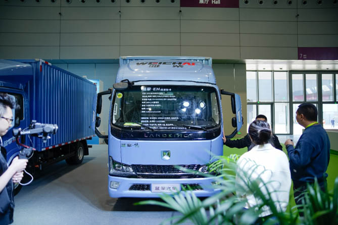 同时在展区现场,还推出蓝擎EH-170马力超混轻卡产品,整车搭配潍柴170马力/宁德15.45kWh动力系统,最大可实现1000KM+长续航,油电混动,使用成本更低。同车辆绿牌设计,进城无忧,也成为现场用户的关注点之一。