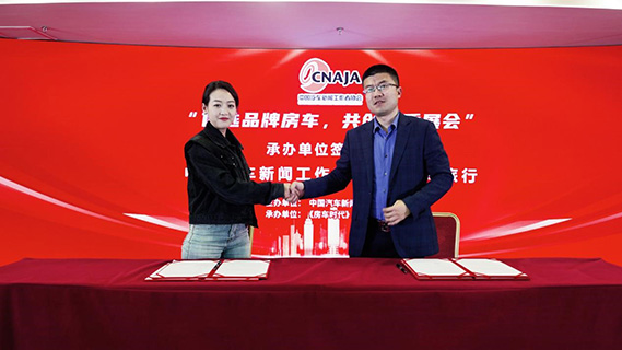 主办方代表中国汽车新闻工作者协会副理事长兼秘书长韩君善分别与联合主办单位代表懂车帝巨懂车销售业务副总裁卜丽军、联合承办单位代表房车旅行总经理张泽群、协办单位代表中国房车配件及户外用品产业联合体秘书长胡建签署了战略合作协议。