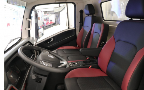 在驾驶舒适度上,德龍G300更是遥遥领先。进入驾驶室,2020mm的空间格外宽敞,腿脚伸展不受限,没有局限感。红黑双色拼接内饰时尚美观,乘用车级别的内饰营造出了轻松舒适的氛围。