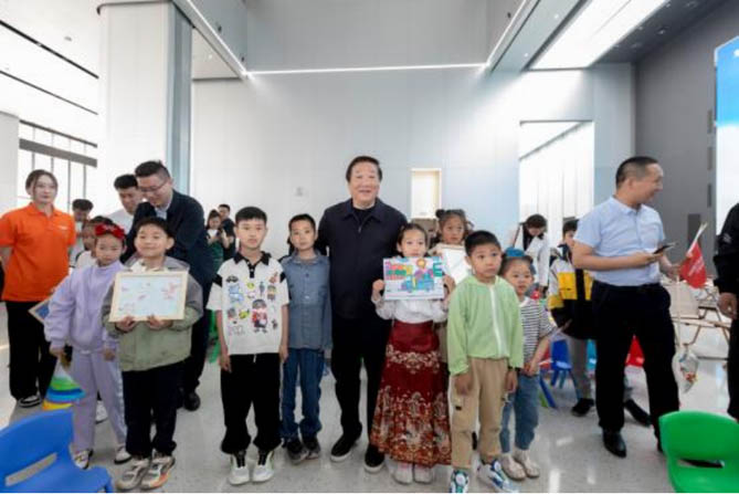 在活动现场,谭旭光对中国重汽员工家属们长期以来对中国重汽各项工作的支持表示感谢,并向他们致以节日的美好祝福。在未来共绘和休闲娱乐区,谭旭光与小朋友们共同作画、一起游戏;在园区各处活动场地,谭旭光与劳模先进及员工家属一一握手,询问工作和生活情况,勉励大家再接再厉,创造更加辉煌的成绩。