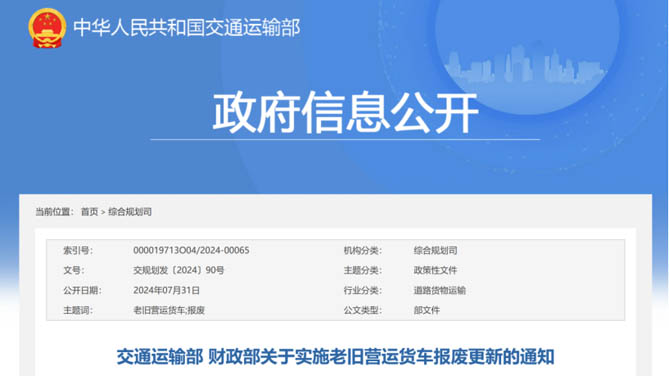 日前,为加快报废高耗能高排放老旧货车,交通运输部、财政部两部门发布了商用车重大利好政策——《关于实施老旧营运货车报废更新的通知》,老旧营运货车报废更新最高可补贴14万元!该补贴政策实施将持续到2024年12月31日!
