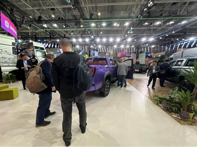同时,来自欧洲、中东、东南亚、美洲等地区的经销商先后来到展台,展露出强烈的合作意向。中东的亚耶鲁克正是这样一位远道而来寻觅商机的经销商,他表示搏胜皮卡性能更全面的柴油动力、可靠耐用的品质正好契合中东用户的需求,希望将搏胜皮卡引入当地市场,为当地用户带来更实用的皮卡新选择。