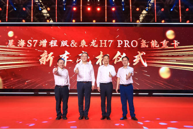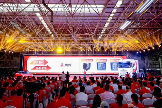 在庆典的高潮时刻,备受期待的“龙行工程”新品发布仪式隆重举行。在万众瞩目之下,乘龙H7 PRO氢能重卡震撼亮相,瞬间成为全场焦点。这款新品不仅标志着东风柳汽在新能源商用车领域的全新突破,更是技术实力和创新精神的有力证明。