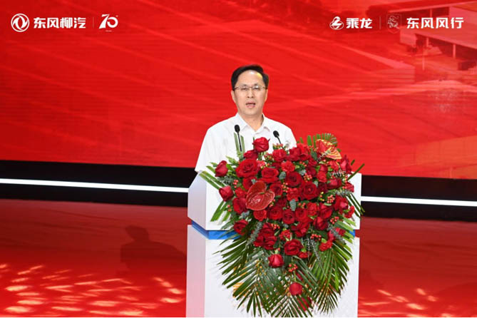 东风公司总经理助理、东风柳汽董事长周先鹏发表致辞,70年来,东风柳汽始终秉持“自立自强、创优创新、同心同德、为国为民”的企业精神,勇于创新,不断突破,实现了从单一产品向涵盖商用车、乘用车及新能源汽车多元化产品的跨越,赢得了广泛的市场认可和用户信赖,推动事业不断实现跨越式发展。东风公司将一如既往、全力支持东风柳汽各项事业发展。