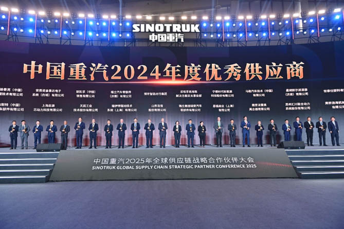 2024年12月11日,以“WE ARE ONE——一家人、一条心、一起干、一定成”为主题的中国重汽集团2025年全球供应链战略合作伙伴大会在山东济南成功举办。山东省委常委、济南市委书记刘强,山东重工集团党委书记、董事长满慎刚出席活动并致辞。
