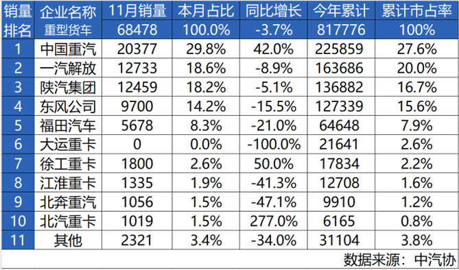 2024年11月,我国重卡行业迎来了下半年的历史性转折,同比下降趋势显著减缓,展现出市场复苏的强劲脉搏。当月,我国重卡销售68478辆,环比10月销量提升3.2%,同比小幅下降3.7%,整体态势积极向好。这不仅标志着市场环境逐步回暖,更预示着重卡行业将迎来新的发展阶段。
