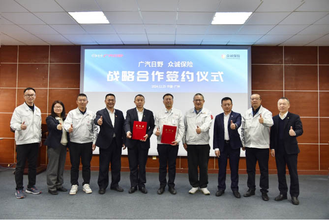 12月25日,广汽日野与众诚保险在广州召开广汽商用车“智安品牌”保险发布会暨战略合作签约仪式。广汽日野总经理张志勇、党委书记&工会主席夏强,众诚保险董事长杜志坚、总裁郑新等出席本次仪式,双方正式签署战略合作协议并共同发布“智安品牌”保险。