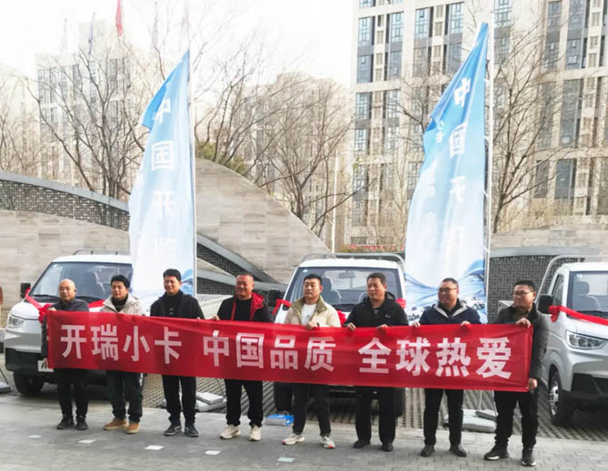 开瑞小卡产品展现出中国品质的魅力,开瑞X3/X5/X7/S卡等产品,造型美观,具有高承载、动力强、更舒适性。开瑞联卡被称为最能赚钱的电动大微卡,其配置具有IP68等级开瑞62.98度液冷电池,续航可达351km,电池终身质保,最大爬坡度30度,采用笼式车身,拥有54%高强钢,另外有六大王炸服务为运营保驾护航。