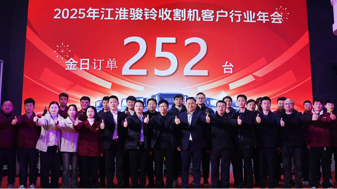 2025年江淮1卡骏铃收割机客户年会在驻马店圆满举行,骏铃A9、德沃斯Q8等多款收割机车型纷纷亮相,以惊喜福利馈谢广大收割机用户。活动吸引了广大麦客来访参与,试驾并现场订购心仪车型,活动当日订单突破252台,麦客们用渴望丰收的热情点燃了这一场盛大的收割机行业年会。