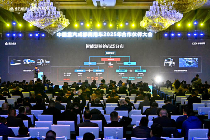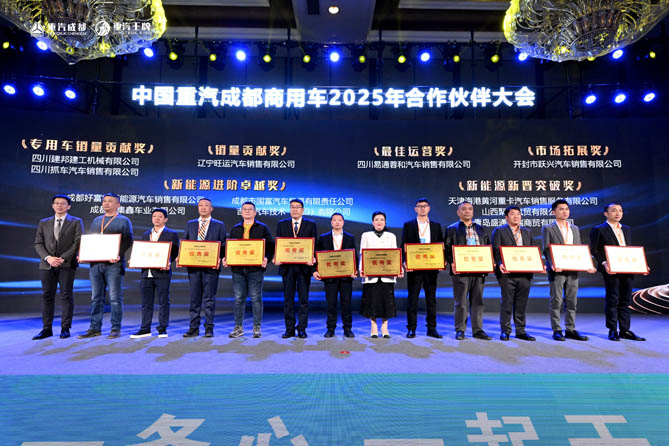 2025年2月14日,以“新生·共荣”为主题的重汽成商2025年合作伙伴大会在天府成都成功举办。会上,公司党委书记、董事长王美贤作《破局 新生 共荣》主题报告;党委副书记、总经理赵青作《智耀新生 聚链共荣》营销报告。全国各合作伙伴代表,嘉宾,媒体记者等500余人共同见证此次盛会。