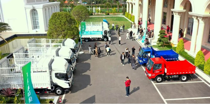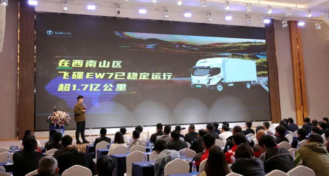 在用户交车仪式上,首批车主代表接过钥匙,激动地表示:“飞碟EW7不仅续航强、动力足,售后服务更是贴心,开这车跑运输,心里踏实!”