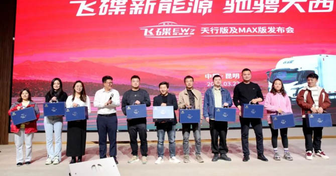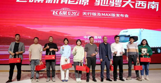 2025年3月22日,飞碟汽车在云南昆明隆重举行了飞碟EW7天行版及MAX版上市发布会。来自全国各地的400余位行业大咖、经销商、新老客户及媒体代表齐聚一堂,共同见证了这一新能源轻卡领域的重磅新品发布。同时,活动还通过线上直播吸引了众多粉丝朋友实时观看,线上线下联动,热度空前。