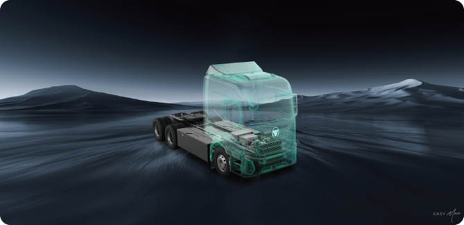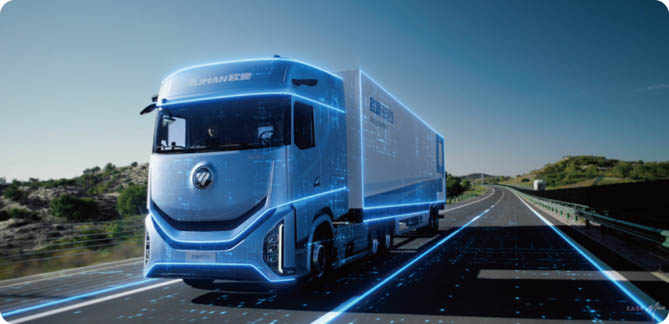 技术创新层面,福田汽车秉持自主研发理念,围绕纯电、混动和氢燃料三大技术路线,构建起完善的核心技术体系。三电技术领域,配备福田爱易科111kWh轻型动力电池、轻型电力电子单元(PEU)、4.5T轻型电驱桥的全自主三电应用的轻卡产品已成功下线,为用户带来绿色、智能、高效的运营体验;混动技术方面,FHS混动技术平台集成混动专用发动机DHE、专用变速器DHT、混合动力系统DHP等模块,基于该平台,欧曼混动重卡实现硬件40余项前沿技术集成与软件65项策略优化,节能超10%、起步加速性能提升30%;氢燃料技术领域,福田汽车布局大功率燃料电池、热管理等关键核心技术,自主研发的300kW氢燃料电池发动机实现“功率、效率、寿命”三重突破,效率超63%,具备-35℃极寒启动能力,质量功率密度达811W/kg,处于行业前沿水平。