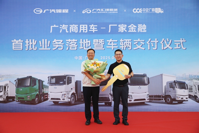 2025年9月19日,“广汽商用车厂家金融首批业务落地暨车辆交付仪式” 在广汽领程广州工厂隆重举行,广汽领程总经理张志勇、广汽汇理租赁总经理曾和滨、中企广商董事长赵哲及其他代表出席,共同见证广汽商用车厂家金融“绿程智融”的发布及46台广汽领程轻卡交付,标志着广汽商用车厂家金融业务实现突破性进展。
