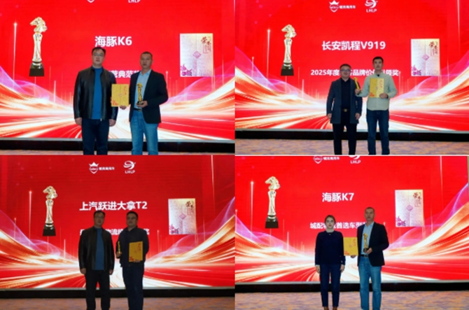 海豚K6获得节能运营典范奖。长安凯程V919获得2025年度轻客品牌价值引领奖,上汽跃进大拿T2获得最佳快递物流纯电车型奖,海豚K7获得城配物流首选车型奖。
