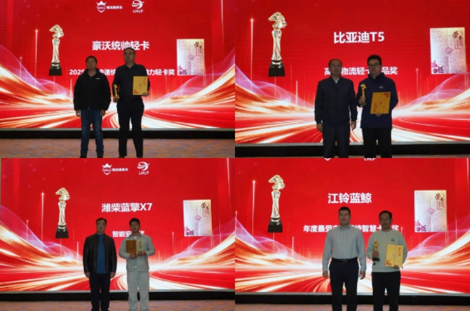 豪沃统帅轻卡获得2025年度快递快运最具影响力轻卡奖,比亚迪T5获得高效物流轻卡产品奖,潍柴蓝擎X7获得智能安全奖,江铃蓝鲸获得年度最受市场期待智慧卡车奖。