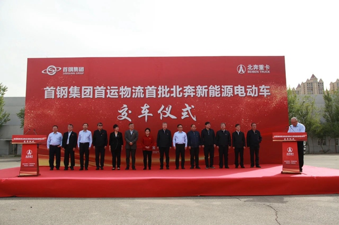 北奔重汽举行首钢集团首运物流首批北奔新能源电动车交车仪式