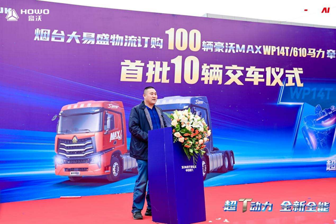 近日,中国重汽豪沃MAX WP14T 610大马力高端产品的大批量订单于山东烟台完成了首批交付。如今低迷的物流运输行情,让很多货运人的信心难以提振,然而烟台大易盛物流公司却选择逆流而上,一次性订购100辆车,是怎样的信念和能量让这家物流公司拥有如此魄力?又是出于什么原因将采购订单全部锁定豪沃MAX 610马力牵引车?笔者通过与该物流公司总经理王冲的一番交流,得出了答案。