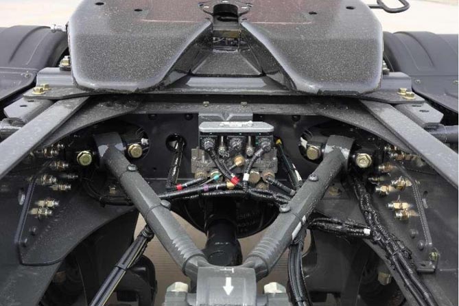 乘龙H7 LNG牵引车的轻量化秉承“双降”黑科技,采用高强度单层车架、分体式轻量化悬架、铝合金轮毂,结构优化减少冗余部件,降重不降质;发动机降重、轻量化后桥、轻量化鞍座,应用高强度轻量化材质,降重反提质。通过这一系列科学、材料降重,整车自重轻至8.9吨,较竞品轻300KG,如按照年运营20万公里,吨公里运费0.3元计算,年均可为卡友多收益18000元。