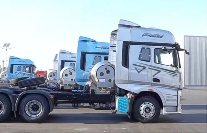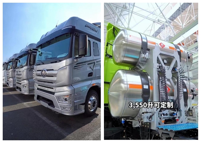 就目前市场趋势来看,许多货车司机不满足于一个气罐的储量,主机厂也推出了多气瓶的款式。解放J7 LNG牵引车的气瓶容积支持1350L~3550L定制化方案,2350L气瓶最长续航里程可达3000km,兼顾自重和气耗,减少了进出加气站频率,从而提高出勤率,为用户带来更多收益。驾驶它“千里走单骑”不再有顾虑,车辆在各种工况下都能稳定可靠地运行。