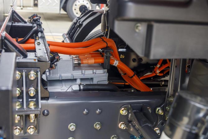 乘龙H5充换电牵引车在轻量化方面表现出色,通过35项轻量化设计,整车自重轻至9吨以内。采用鞍座、铝合金轮毂等高强度轻量化材质,降重提质,承载更强,自重相比市场同类产品轻400kg,有效提高车辆的运输效率。