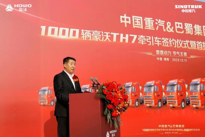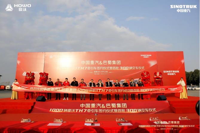 匠心追求,锻造至臻品质;极致信赖,铸就合作共赢!2023年12月11日,“雷霆动力 节气王者——中国重汽&巴蜀集团1000辆豪沃TH7燃气牵引车签约仪式暨首批300辆交车仪式”于中国·绵阳隆重举行。这不仅是双方合作的新里程碑,也是共同发展的新起点。