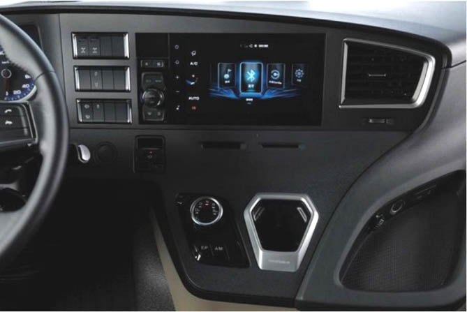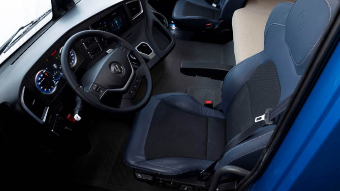 空间及舒适性方面,AMT旋钮式换挡设计,释放主驾与副驾和卧铺之间的通道,提升车内通过性。地板鼓包高度降至150mm,中地板站立高度1850mm,车内活动空间更宽敞。配备人机工程学高端气囊减震座椅,拥有阻尼调节、三级腰托、扶手支撑、加热+通风等功能,行车舒适性有保障,更适合煤炭运输工况。拥有880mm同级最宽卧铺,在长时间驾驶后,可以提供更舒适的休息环境,减轻疲劳感。