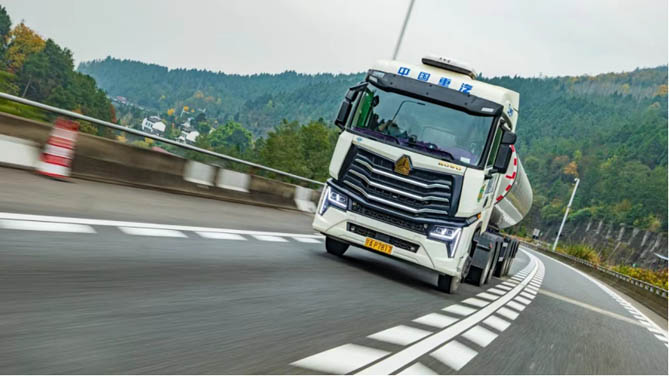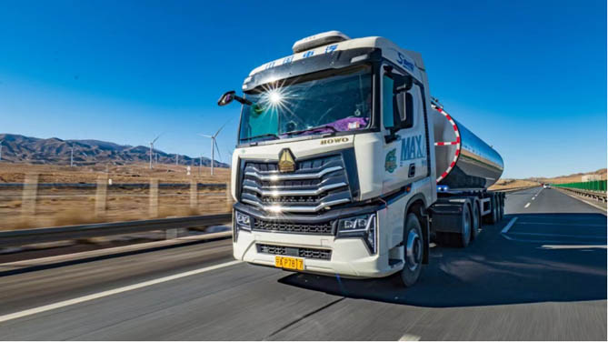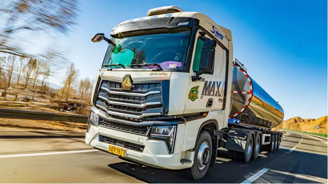 更令王得平惊喜的是,豪沃MAX燃气车不仅在燃气消耗上表现出色,其动力性能也堪称一流。其搭载潍柴WP15NG燃气机,最大输出功率达530马力,最大扭矩2500N·m,无论是在爬坡还是超车,都能轻松应对,动力性能相当惊人。这也使得王得平在运输过程中能够游刃有余地应对各种复杂路况,确保鲜奶的及时送达。
