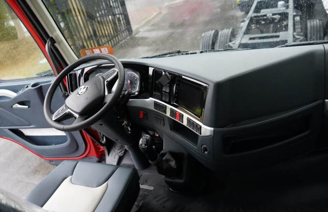 整车搭载同步器变速箱,动力足,不易坏,操作更轻松。标配液缓,减少摩擦片磨损,运营成本更低,行车更安全。同时车身应用轻量化铝圈、铝合金储气筒、铝合金大油箱,降重且防锈防腐,配置大方量货厢,实现合规多拉,轻松多赚。