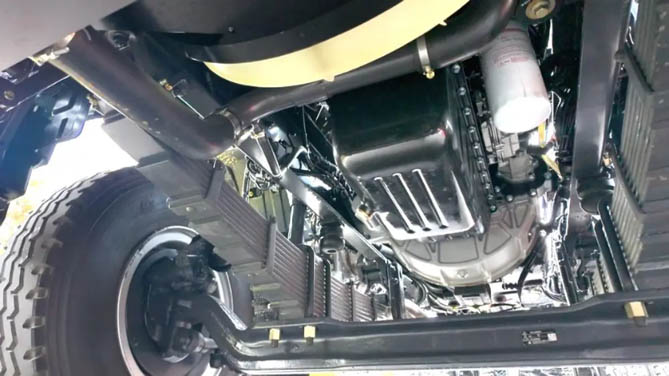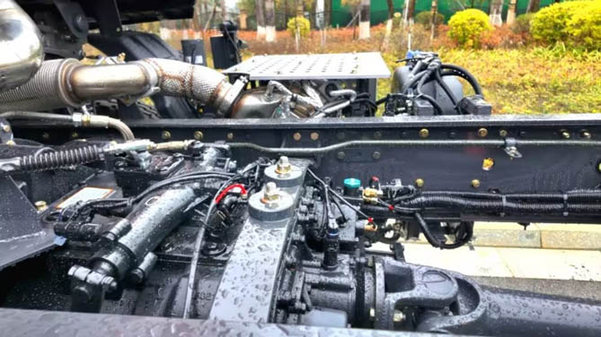整车搭载采用玉柴S06 270马力发动机,搭配大10档变速箱及速比5.262铸钢后桥,整套动力链堪称黄金动力匹配,动力强劲,成熟可靠,起步加速、爬坡过坎毫无压力。标配电控硅油离合器风扇总成,搭配发动机ECU精准标定,相比市面上普遍采用的直连风扇,能够精确控制水温,使发动机工作在最佳温度。不仅节能降噪,更能实现4%以上的燃油经济性。