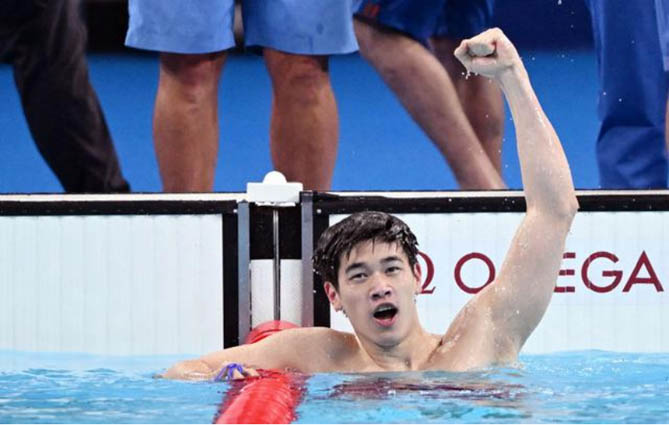乒乓球男单四分之一决赛中,樊振东上演惊天大逆转,在大比分落后的情况下力挽狂澜,最终以4:3胜出进入四强。男子100米自由泳决赛中,潘展乐以46秒40的成绩打破由他之前创造的46秒80的世界纪录,在极限挑战里,爆发出极限的成绩。