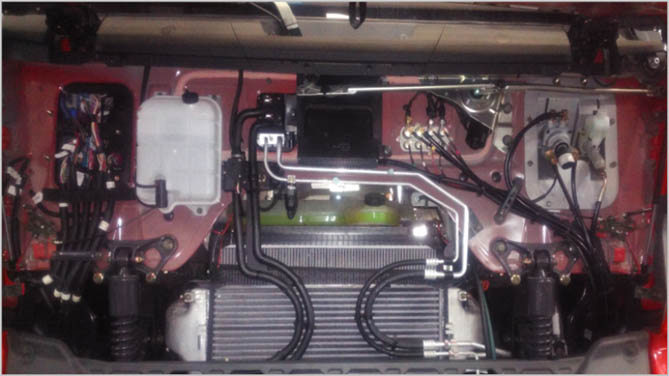 整车标配电控硅油离合器风扇总成,搭配发动机ECU精准标定,相比市面上普遍采用的直连风扇,能够精确控制水温,使发动机工作在最佳温度。不仅节能降噪,更能实现4%以上的燃油经济性。