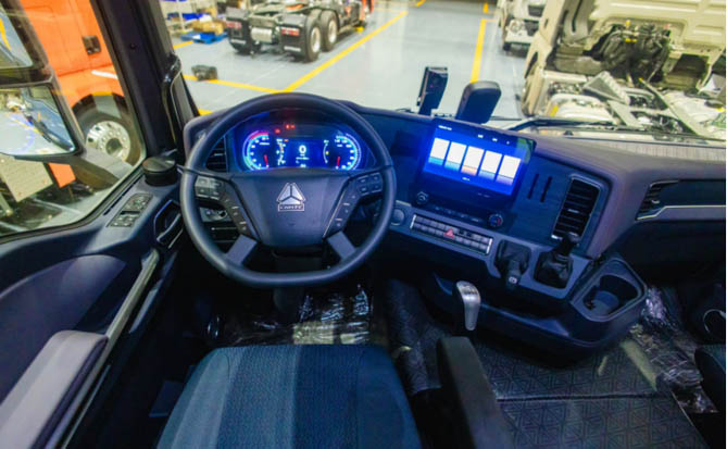 在舒适驾乘方面,豪沃TX7-N同样不遗余力。全新前脸造型与LED大灯交相辉映,尽显欧系经典韵味。而国潮内饰的融入,更为驾驶室注入全新活力,采用全新配色、全新14键方向盘、10吋炫彩悬浮屏以及60W快充等配置,全方位满足用户多元化需求,让每一次出行都成为享受。在人机优化方面,座椅调节、卧铺降低、仪表台下移50mm及前盲区缩减1.5m等设计不仅提升了驾驶舒适性,更为行车安全提供了有力保障,“舒适头等舱”名不虚传!