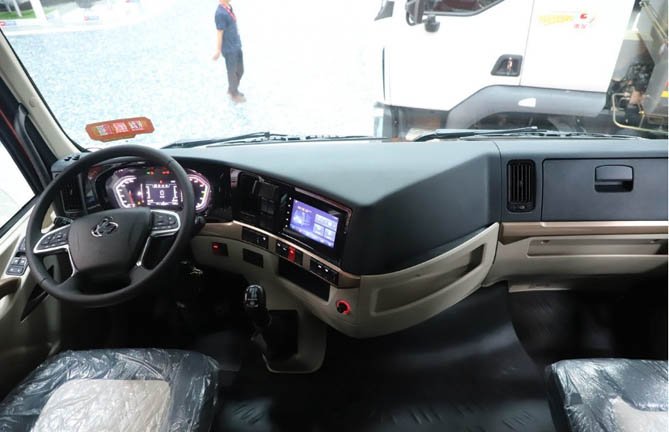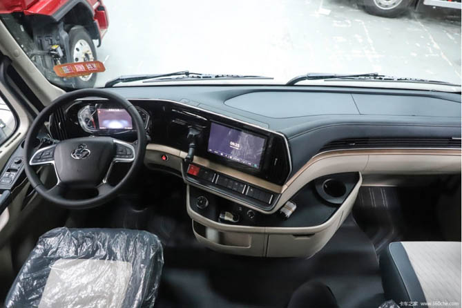 再看车内配置,乘龙H5创富版绿通房车可谓诚意十足,集成有气囊减震主驾座椅、电子驻车系统、自动空调、皮套包裹四幅式多功能方向盘以及超大尺寸的中控大屏等,功能性配置一应俱全,搭配上宽达90公分的超宽卧铺,让卡友驾驶累了可以舒舒服服的补个觉。