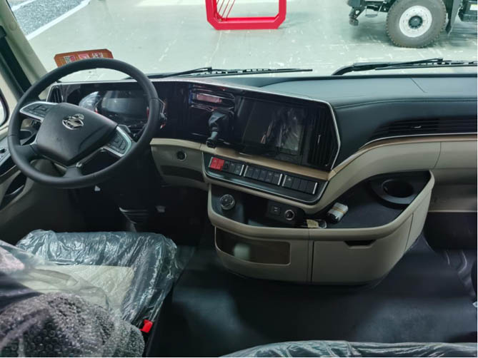 乘龙H5创富版绿通房车搭载专属“龙芯动力链”,动力提升到330马力,变速箱采用国内首款集成式10挡AMT变速箱;整车采用龙犀节油系统,并结合轻量化设计、低风阻车身以及动力链优化等多项节油技术,实测综合路况比国内同类产品节油1.5L-2L百公里,为广大卡友年节约油费11000元;驾驶室采用高顶双卧平地板设计,内宽2.2米,卧铺宽度达90公分,比国内同类产品宽35公分,为卡友提供了宽敞舒适的驾乘与休息空间。高端航空座椅、自动空调、豪华大屏等豪华配置的加入,让卡友在旅途中也能享受到家一般的温馨与舒适。