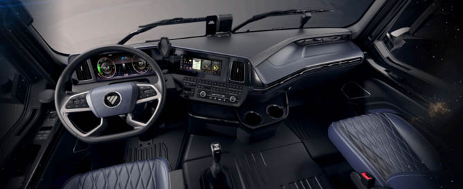 由于工程运输作业环境更加复杂,银河T在内饰设计上采用了低调又沉稳的“暮山蓝”风格,不仅可以让用户行车时更加专注,也更耐脏、易打理、更干净。超大后视窗不仅增加驾驶室透光性,还提供更好的视野,有效减少驾驶盲区,提升行车安全性。中地板超低鼓包设计,使得驾驶室空间通过性更佳。宽敞舒适的卧铺,能让驾驶者得到更好的休息,快速恢复状态。顶置进气系统确保空气更加清洁,进气温度降低6-8℃,进气噪声更小,卧铺处噪声仅有3-4dB,为卡友营造出宁静的驾乘空间,享受更加轻松、舒适的驾驶体验。