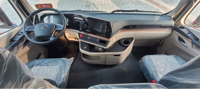 乘龙H5V绿通房车同样亮点十足。其以“龙”为设计元素的外观极具视觉冲击力,号称“中国最美绿通房车”。涟漪式“龙鳞”格栅、镀铬饰条组成的“龙须”、LED前大灯等设计,不仅美观,还提升了辨识度与安全性。车内高顶双卧平地板设计,1.93米的内高与90公分宽卧铺,搭配家居化驾仓设计,标配轿车级四气囊减震及高端航空座椅,储物空间丰富,可选一键启动、远程智控等高科技配置,舒适又便捷。