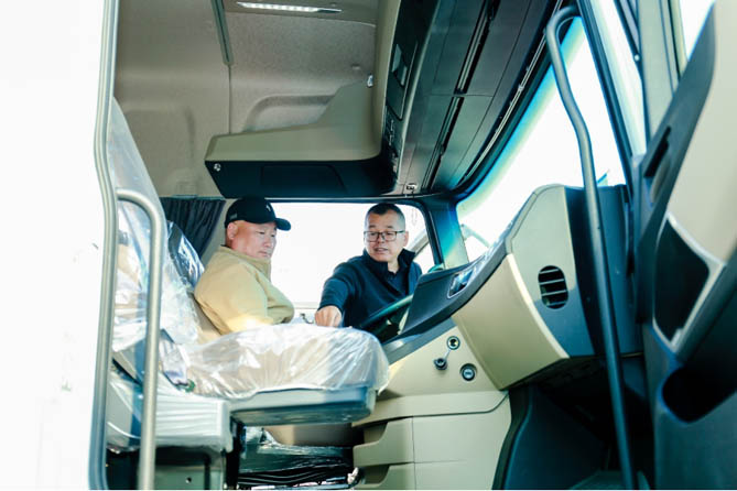 对于用户工作、生活的座舱“天地”,新车结合驾驶操控、休息的场景,将空间优化升级,平地板优化后可达到1850mm的站立高度,从而让用户在车内自由活动。为提升用户驾驶的舒适性,新车配备高端气囊减震座椅,可进行高度、阻尼、前后、靠背调节,具备侧翼支撑和侧腰托和通风加热功能,减少用户久坐操控的疲劳感。休息区专门配备了通宽880mm大卧铺,尺寸达到同级领先,大幅减少用户身体压力,长时间驾驶后休息能有效缓解疲累。