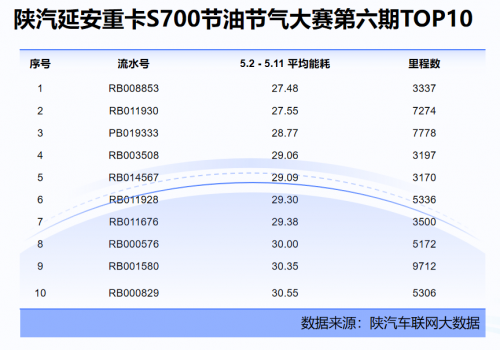 历时62天,跨越6期的陕汽延安重卡节油节气大赛在5月12日圆满落下帷幕。这场以“真实场景、真实数据”为标尺的赛事,不仅是陕汽延安重卡S700车辆性能的试金石,更是万千卡友驾驶智慧与节能技巧的比拼舞台。